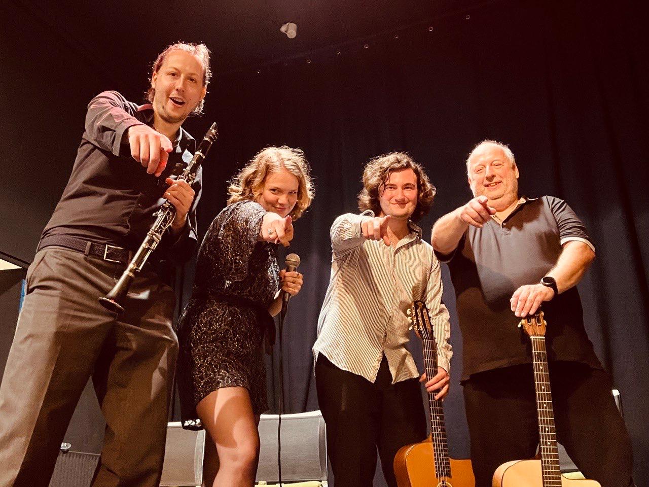 Manouche Jazz Mitwirkende: Eduardo Navarro (Gitarre), Carola Bäumler (Saxophon), Andreas Ortmann (Klarinette und Bratsche), Frank Ortmann (Rhytmus Gitarre), Lina Roß...